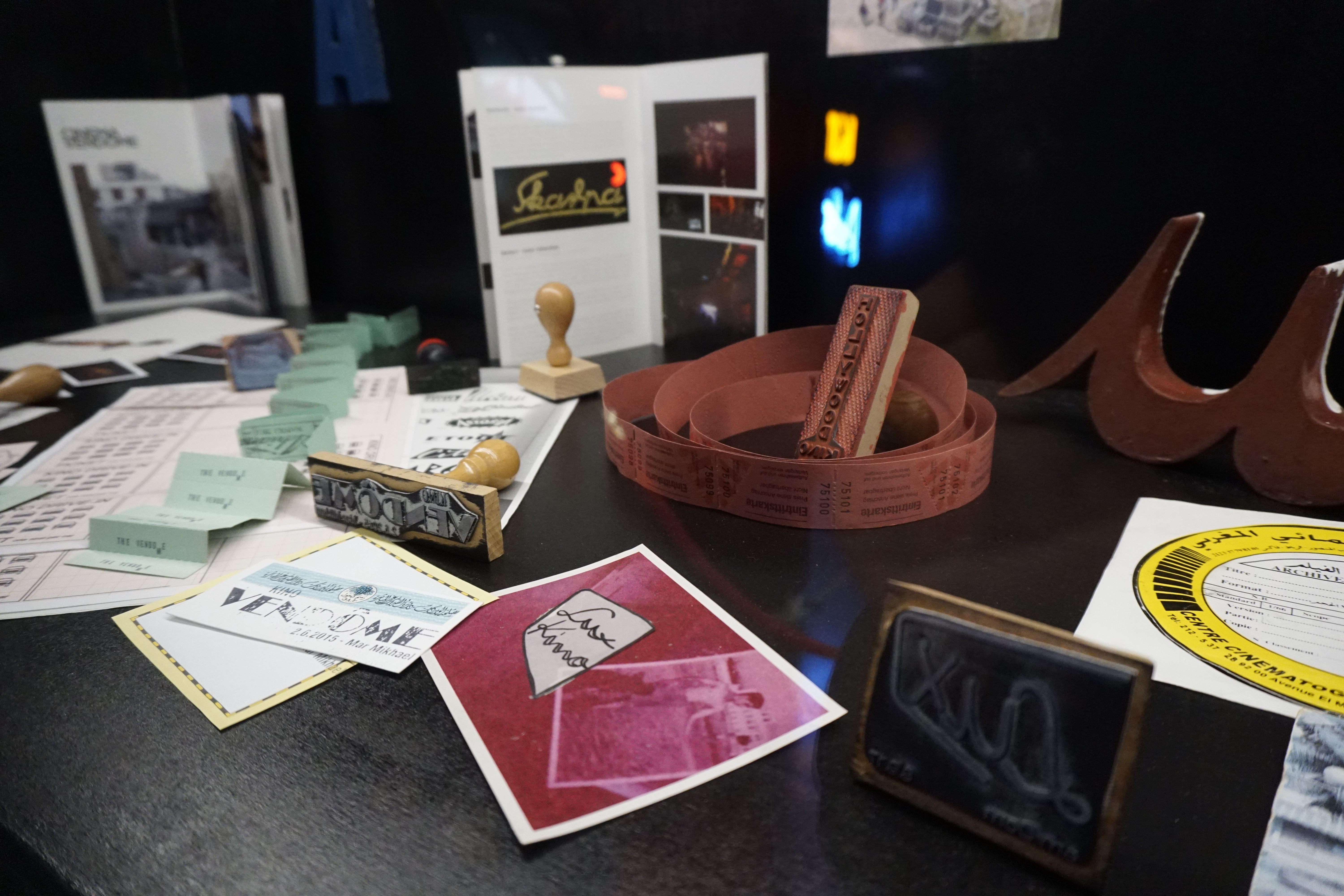 This installation is a continuation, presenting an evolving archive of Das Kino Projekt over the years—from neon signs to ticket stamps, from programs and posters to objects from the Kino Projekt archive, accumulated over time. Image by Siska